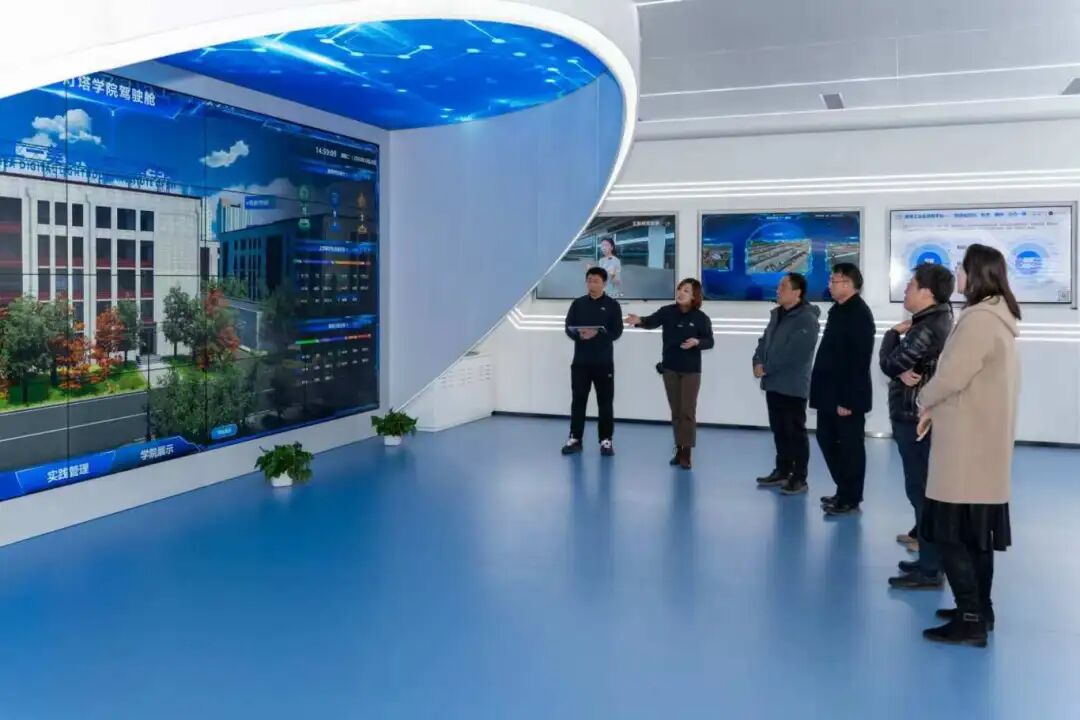 座谈会前,孙延鹏一行参观我校沈工-南方测绘北斗时空信息产业学院、先进制造中心、汽车实践教学中心、华为-沈工现代产业学院、智能高速五轴实践教学基地、沈工-美的数字灯塔学院、沈工-西门子学院和库卡授权工业机器人学院。