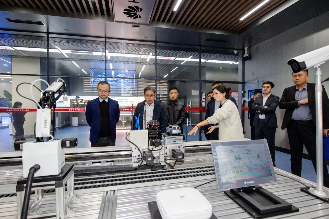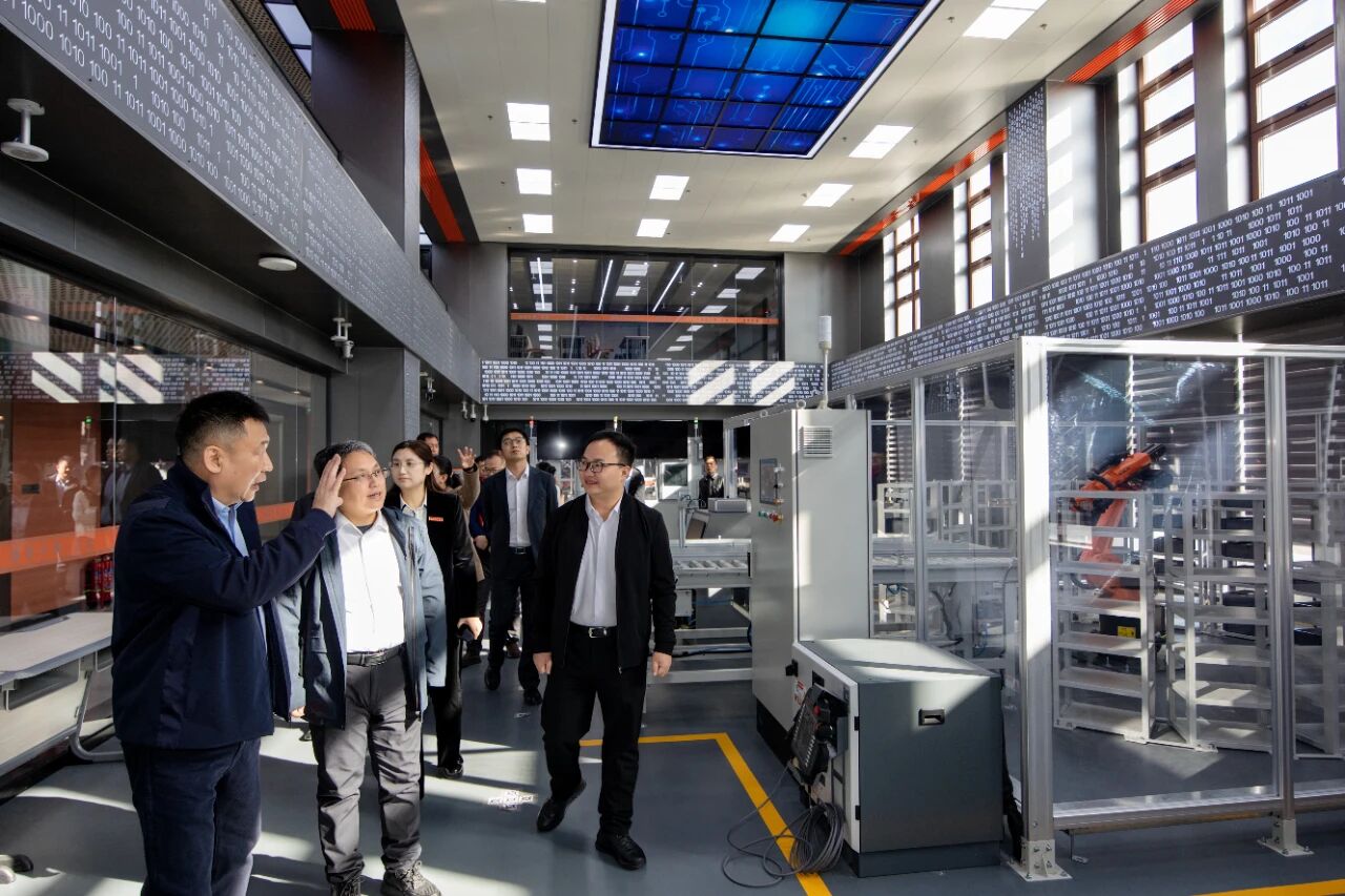 座谈会前,胡剑锋一行参观了我校华为-沈工现代产业学院、沈工-美的数字灯塔学院及库卡授权工业机器人学院。信息与控制学院院长张珠华通过现场微课,展示了学校在智能制造与人工智能领域的教学探索与实践成果。
