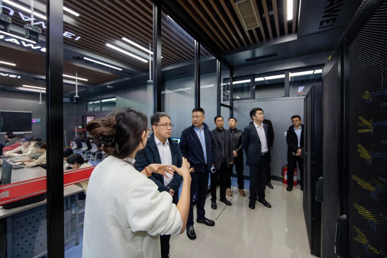 座谈会上,王兆宝对胡剑锋一行的到访表示热烈欢迎,并分享了学校在合格评估、数字化转型以及人工智能通识教育方面的经验与思考。他指出,学校正积极地从经验管理向数据驱动治理方向转变,其前提是强大的通讯、算力与云端支持。在课程设置上,学校已为全校新生开设人工智能类通识课,并将其视为未来核心竞争力之一。在育人理念上,强调与人工智能协同工作,同时融入华为等优秀企业的文化,注重培养学生的担当精神、逻辑思维与沟通能力,全面促进学生成人成才。