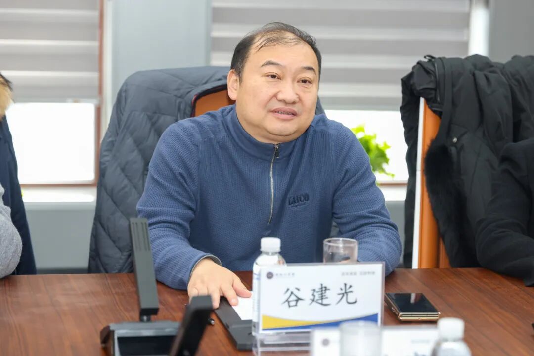 座谈会上,王兆宝对谷建光一行的到来表示热烈欢迎,并详细介绍了学校在现代产业学院建设、数智化转型工作方面的创新举措与实践经验。他指出,近年来,我校紧密对接辽宁省乃至国家的产业发展战略,依托自身办学优势,联合华为、美的、库卡等行业头部企业共建现代产业学院,其核心思路是构建“教育-科技-人才”三位一体协同发展的创新生态,通过引入行业领军企业真实生产场景、技术标准和项目案例,不仅共建了高水平的实践教学基地,更在课程体系、师资培训、创新创业等方面实现了深度重构,确保了人才培养与行业需求的高度契合。他表示,沈阳工学院愿与两校围绕产业学院建设、智能制造等共同关心的领域,开展更深度的合作,推动两校资源共享、优势互补,为区域经济社会高质量发展提供坚实的人才与智力支撑。