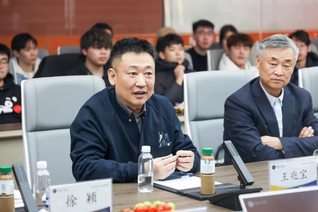 座谈会上,王兆宝对许桂友一行的到来表示热烈欢迎,并重申学校践行产教融合育人理念的坚定决心。他指出,教育的本质是赋予学生应对未来挑战、承担时代责任的过硬本领。学校积极引进企业优质资源与先进实践经验,核心目的是让学生在校期间接轨行业标准、积累实战经验,实现从课堂到岗位的快速适配,缩短从校园到职场的适应周期。目前,学校正通过引入AI智能体等方式推动教学体系改革,促进教育本质回归。同时,他勉励订单班同学们认清时代趋势,提升认知格局,主动对标行业先进标准,积极拥抱以人工智能为代表的新技术、新产业,立志在智能制造领域担当重任,以卓越成就回报社会与母校。