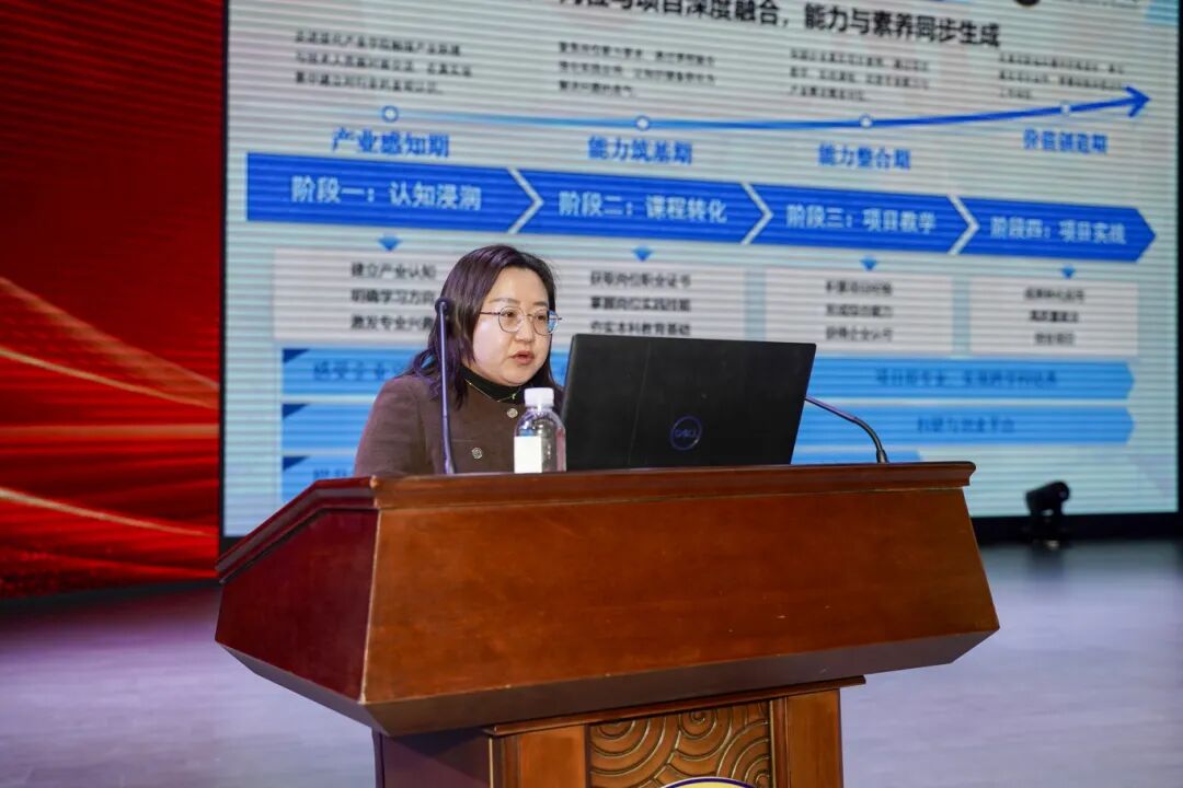 校长助理、教务处处长杨玥作2026年教学工作布局与发展路径工作报告,从产业学院:融合场景—现代产业学院教学四阶段演进路径、培训体系:能力地基—培训体系如何成为教学改革的基石;项目教学:课程主线—用一个真实项目串起一个课程群;人才培养:最终指向—教师发展、学生成长、价值转化等四个方面进行阐述,明确了教学工作的核心任务,推动教学与产业需求深度适配。