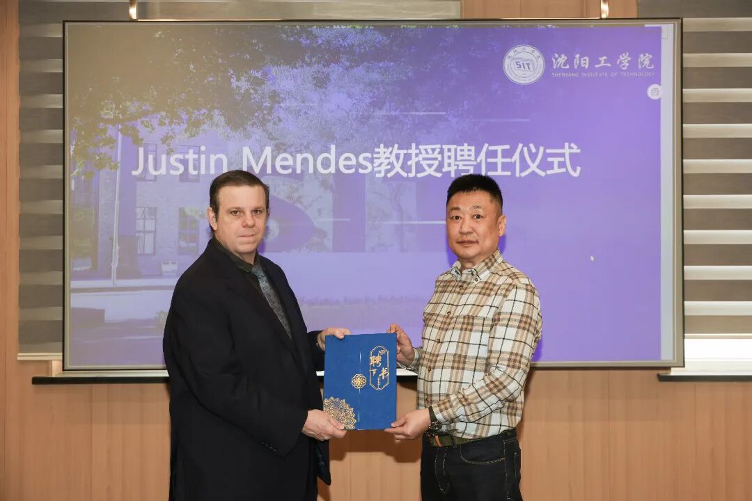 近日,辽宁省人民政府公布2025年度“辽宁友谊奖”获奖名单,我校特聘外籍专家Justin Mendes博士凭借在数智化人才培养、产教融合与国际化办学等领域的卓越贡献成功入选。3月24日,辽宁友谊奖授予仪式在我校举行。省人社厅外国专家工作处处长彭志平出席活动并为Justin颁奖,我校董事长王兆宝为Justin颁发沈阳工学院终身教授聘书,副校长徐颖参加活动。