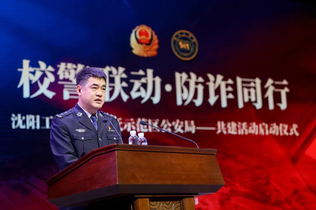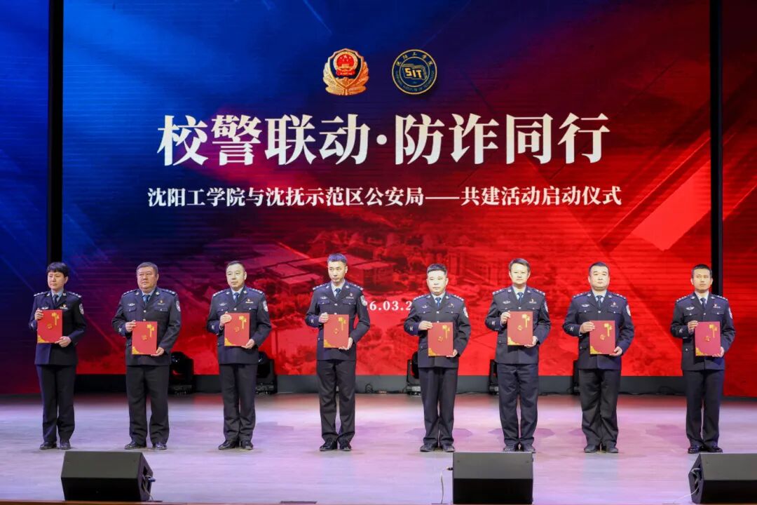 3月23日,我校与辽宁省公安厅沈抚改革创新示范区公安局联合举办“校警联动・防诈同行”结对共建活动启动仪式。沈抚示范区管委会副主任、公安局党委书记、局长崔丕宏,公安局党委副书记、政委白丛波,公安局党委委员、副局长孟繁宇,我校党委书记胡晓梅,副校长石伟、周永昌出席活动。沈抚示范区管委会“131”机制各成员单位领导、公安局民警辅警代表及我校师生代表参加活动。