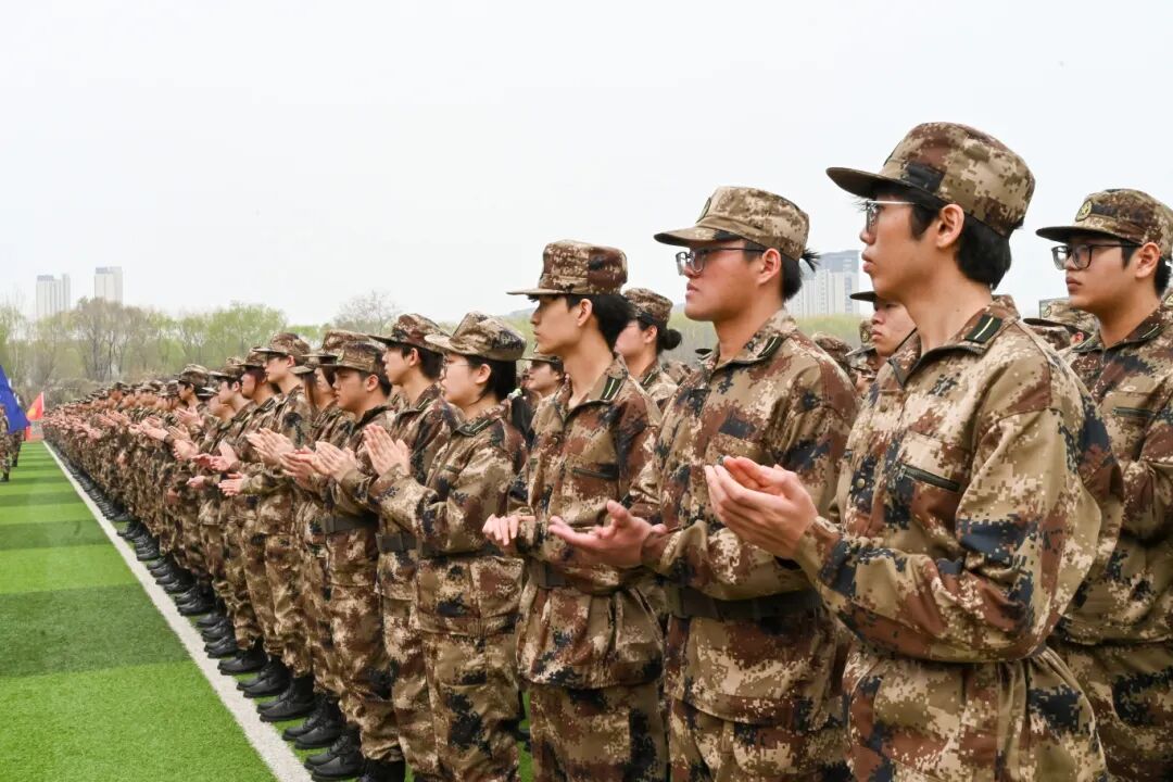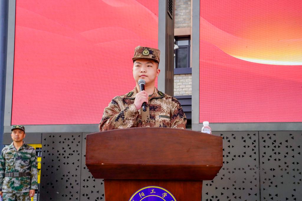 经济与管理学院2025级学生白子原带领全体参训同学庄严宣誓:一切行动听指挥,严守纪律,刻苦训练,磨练意志,淬炼青春,并齐声喊出“强国有我,请党放心!”的青春誓言,展现了新时代青年大学生的昂扬斗志。
