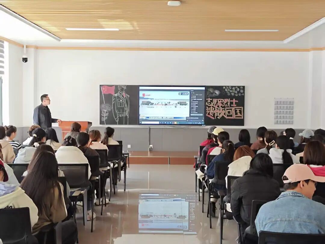 为铭记伟大胜利、致敬最可爱的人,4月22日,在第十三批在韩中国人民志愿军烈士遗骸回归祖国之际,我校组织师生集中收看“英雄,永不谢幕”传承弘扬伟大抗美援朝精神大思政课特别节目。全校师生通过网络平台收看直播,共同接受了一场深刻的思想洗礼和精神淬炼。