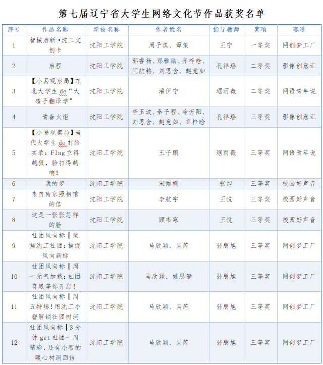近日,第七届辽宁省大学生网络文化节和全省高校网络教育优秀作品推选展示活动评选结果揭晓,我校师生交出亮眼答卷!不仅在省级赛多个赛道成功展示,更拿下一等奖1项、二等奖3项、三等奖10项的好成绩,其中13项作品获得“省级教育行政部门推荐”资格,推荐参加第八届全国大学生网络文化节和高校网络教育优秀作品推选展示活动,实现获奖质量的重大突破。