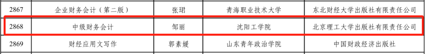 近日,教育部发布关于第二批“十四五”职业教育国家规划教材遴选结果的公示,我校经济与管理学院邹丽老师主编的教材 《中级财务会计》成功入选!