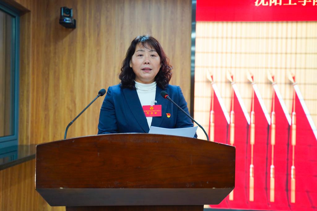 李颖代表沈抚示范区妇工委向大会的召开表示热烈祝贺,向与会代表及全校女同胞致以诚挚问候。她指出,沈阳工学院妇联的成立是学校全体妇女政治生活中的大事,也是示范区妇女组织建设的重要成果。她对学校广大女性师生为学校与区域发展作出的贡献予以充分肯定,并对妇联未来发展提出三点希望:一要建强红色阵地,坚持党建带妇建、妇建服务党建,强化思想引领,团结女教职工和女大学生坚定听党话、跟党走;二要搭建建功平台,围绕学校与示范区发展大局,推动巾帼力量服务区域创新与产业发展;三要打造温暖娘家,精准对接女性需求,切实提升妇女获得感、幸福感、安全感。示范区妇工委将全力支持学校妇联工作,携手为区域高质量发展贡献巾帼智慧与力量。