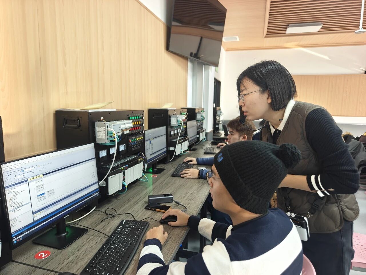 本次研学活动聚焦专业能力提升与文化深度交流,为泰国师生量身打造了系统化的学习体验。在专业研习环节,教学全程采用全英文授课模式,紧密对接泰国先皇理工大学的专业培养目标,课程内容涵盖工业机器人、PLC、华为ICT、人工智能、美的数字化管理、工业互联网及无人机航测等多个前沿技术领域。访学团师生深入库卡授权工业机器人学院、西门子学院等现代产业学院,累计完成72学时的系统学习,沉浸式感受我校在产教融合方面的鲜明特色与丰硕成果,切实提升了专业认知与实践能力。