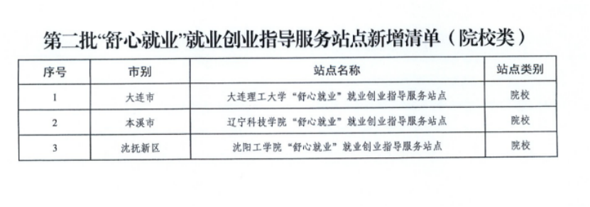 近日,辽宁省人力资源和社会保障厅发布《关于公布“舒心就业”就业创业指导服务站点复核验收结果的通知》,全省高校中共有20个站点为第二批院校类指导服务站点。其中,我校“舒心就业”就业创业指导服务站点成功获批。