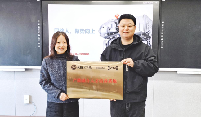 3月27日,我校与吉利浩思动力校企合作订单班正式开班,同时,沈工-吉利产教融合人才培养基地揭牌成立。吉利集团浩思动力企业培训经理张兆石、招聘经理周亮亮,我校副校长、机械学院院长杨秀英出席开班仪式,标志着双方产教融合、协同育人进入实质落地阶段。